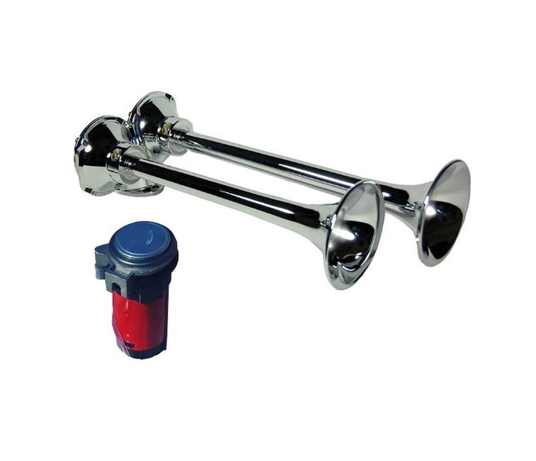 بدنه تمام فلزی با روکش کروم ضدزنگ، علاوه بر ظاهر لوکس و اسپرت، مقاومت بالایی در برابر رطوبت و شرایط آبوهوایی مختلف دارد. همراه این محصول، موتور بوق (کمپرسور) باکیفیت نیز ارائه میشود تا عملکردی پایدار و بدون افت صدا داشته باشد.